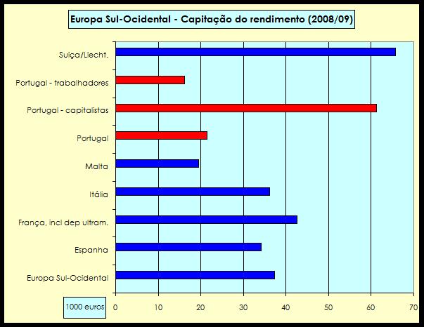 rendimentos médios de um trabalhador português e de um luso capitalista.