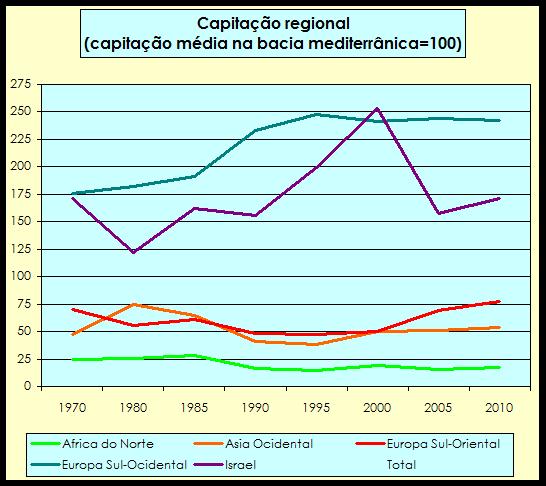 que o índice 100 corresponde à capitação média do rendimento no Mediterrâneo, o