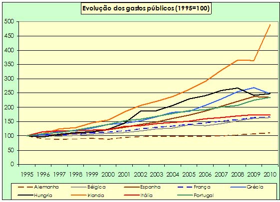 - O crescimento do gasto público global português é o mais baixo registado entre todos os países europeus de menor desenvolvimento considerados, entre 2007 e 2010;