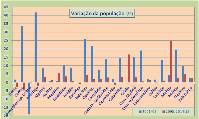 autonomias do estado espanhol há uma quebra generalizada dos aumentos populacionais