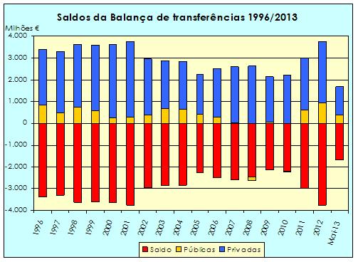 transferências, apresentam em todo o período um saldo positivo sem grandes
