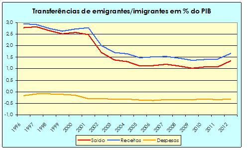 emigrantes, diminuídas dos envios dos emigrantes em Portugal, para a suas